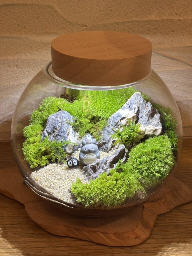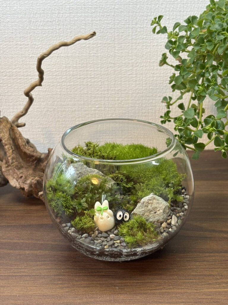 苔テラリウムは、観葉植物よりも管理に手間がかからず、その他の観葉植物にはない「癒し」を提供してくれます。